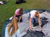 Marie et Mély qui essaient d'avoir l'air hot en montant leur tente